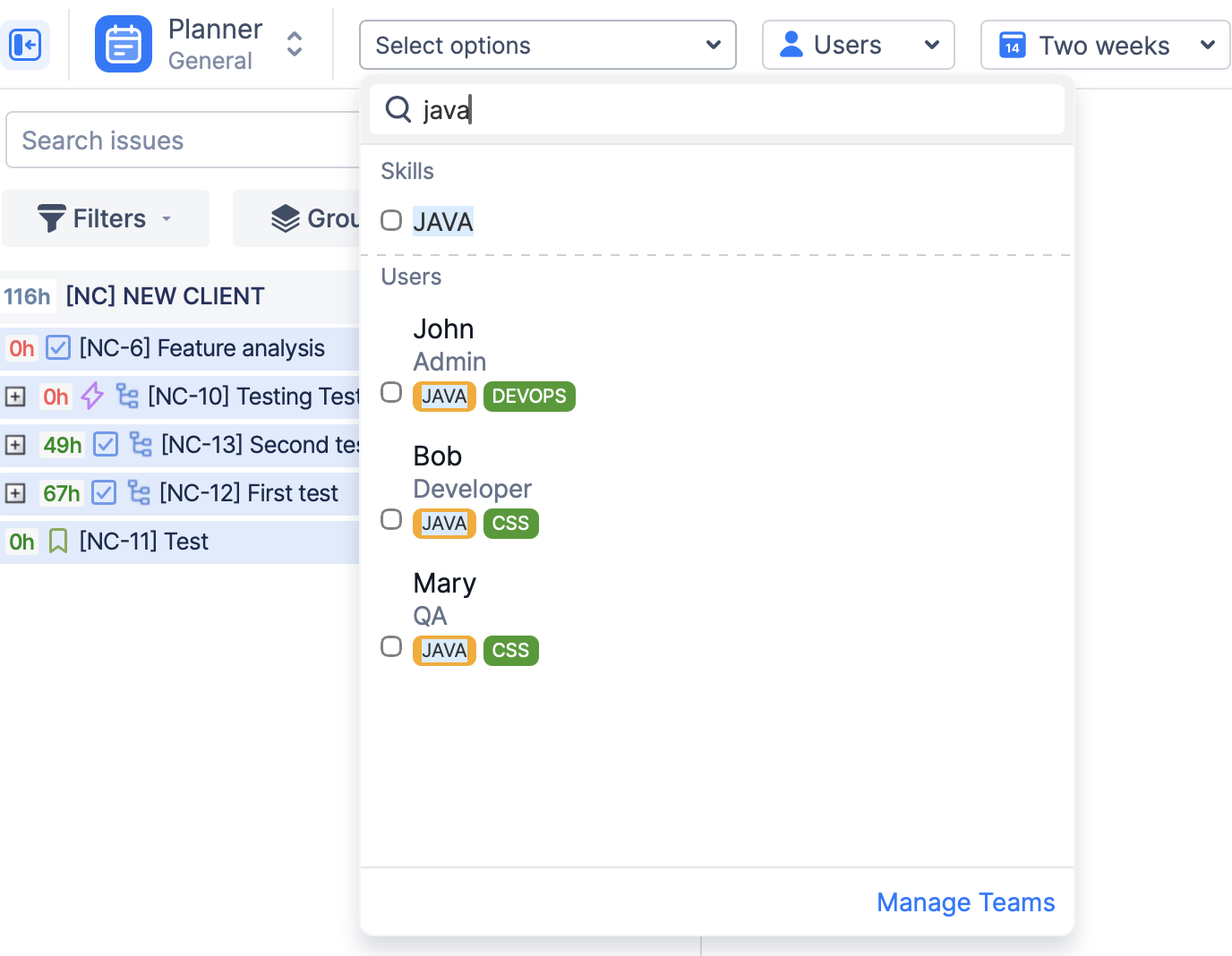Once you have your teams created and users assigned, we recommend filling in his position and skills. You can create skill and positions simply by typing in the appropriate field: