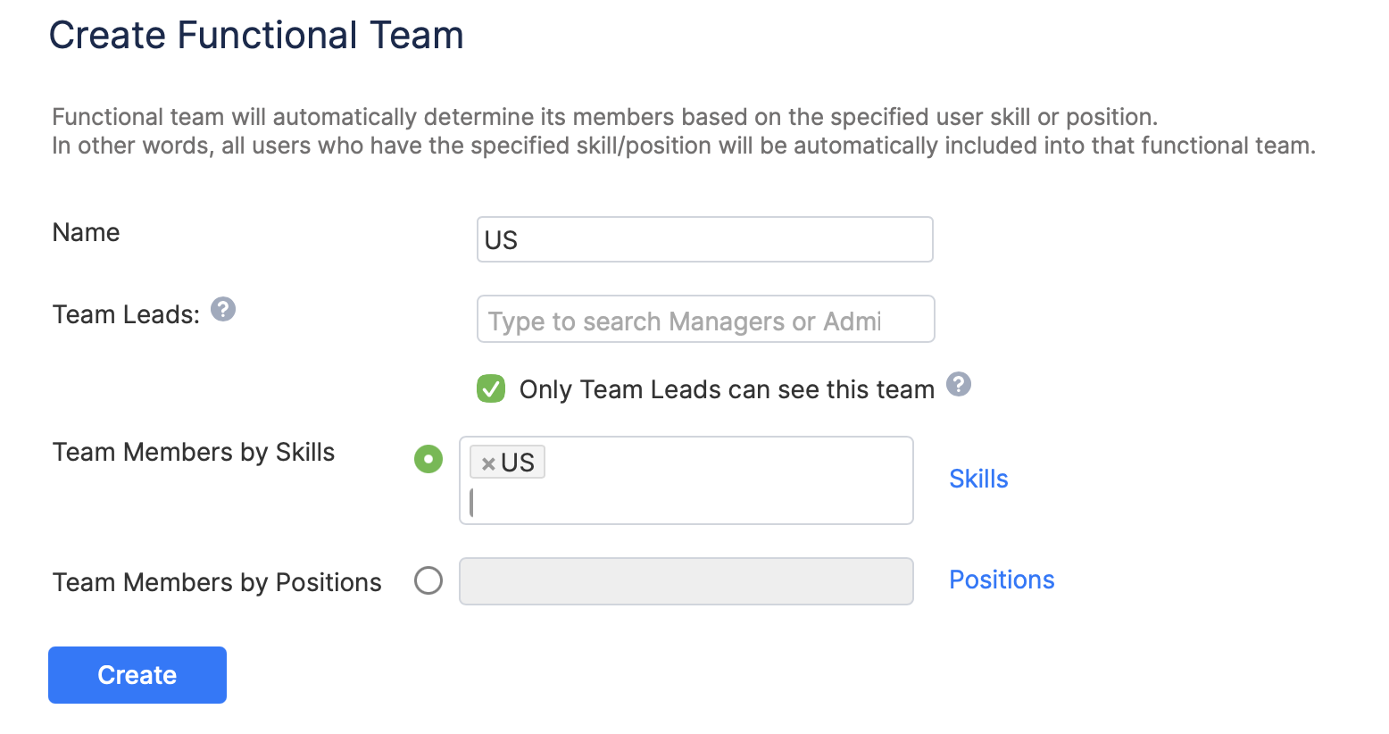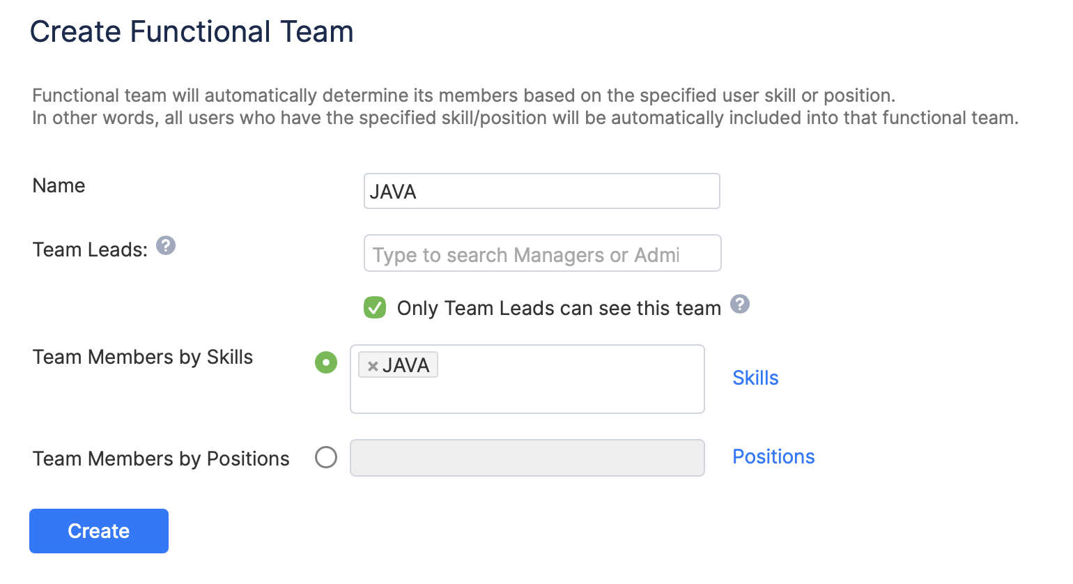 Functional Team can be generated based on skills or position. This means that the system will automatically add people with a specific skill into a team, you can learn more on this here: Functional Team Administration
