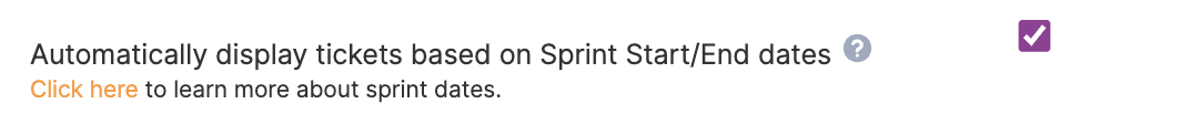 Then, you just need to enable the option to “Automatically display tickets based on Sprint Start/End dates”: