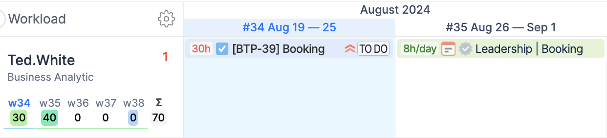 While calculating the workload for the resource, the system will compare the amount of work allocated to the person in a period and will determine whether the resource is over-, underloaded, or has a nominal workload.
