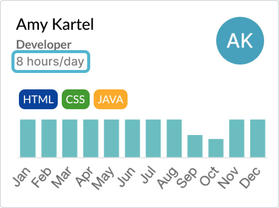 To know if the person is over-, underloaded, or perhaps the amount of work is just perfect, you need to define the capacity of the resource or as we call it - Involvement. This can be set for the organization as a whole or individually for each resource and each day.