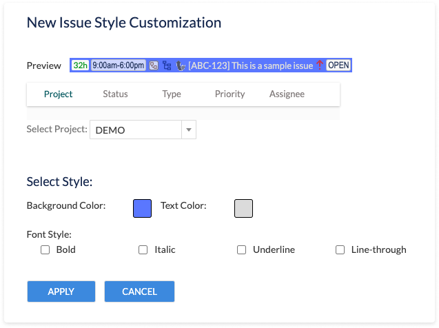 Yes, you can modify the appearance of the issue based on its project, assignee, status, priority, and issue type. This can be edited in ActivityTimeline Configuration → Issues → Issue customization: