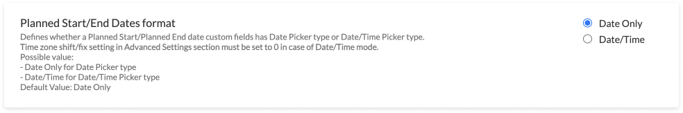 Note: If you have Jira Start/End dates field mapped to ActivityTimeline, they must be of the same type as this configuration, meaning you either use only dates both in Jira and AT or you use Date & Time both in Jira and AT, otherwise system will not work properly!