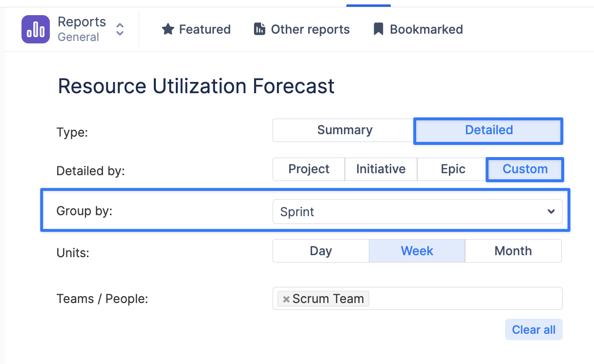 Yes, most of the reports can be generated not only on the Project, Initiative, and Epic levels but also on the customer detailed level. In the report Configuration page, choose ‘Custom’ → Pick your preferred custom field: