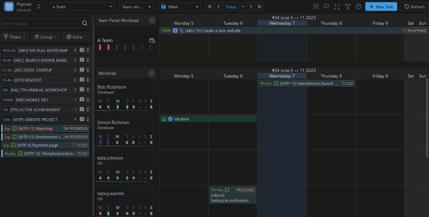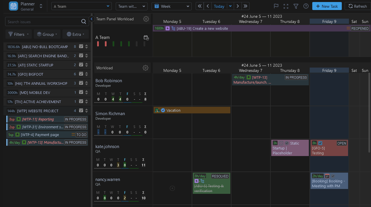 Dark Theme will be applied to all ActivityTimeline Modules: Plan, Work, Track, and Report.