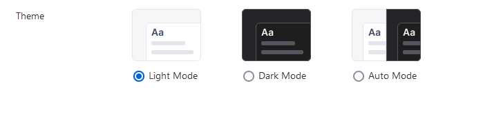 Users can switch from the default Light theme to the Dark theme on the “My Account” configuration page.