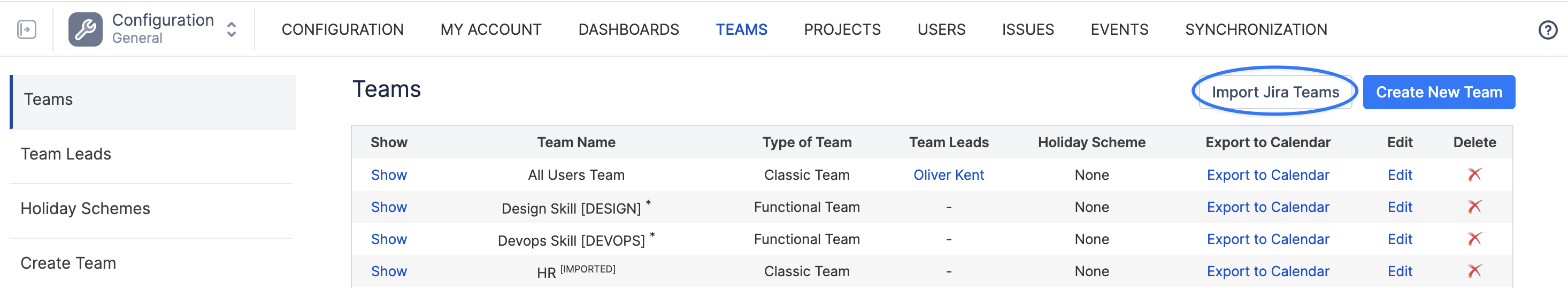 ActivityTimeline Administrator needs to configure one-time integration at ActivityTimeline → Configurations → 3d Party Integration → Jira Teams Integration page to import teams from Jira.