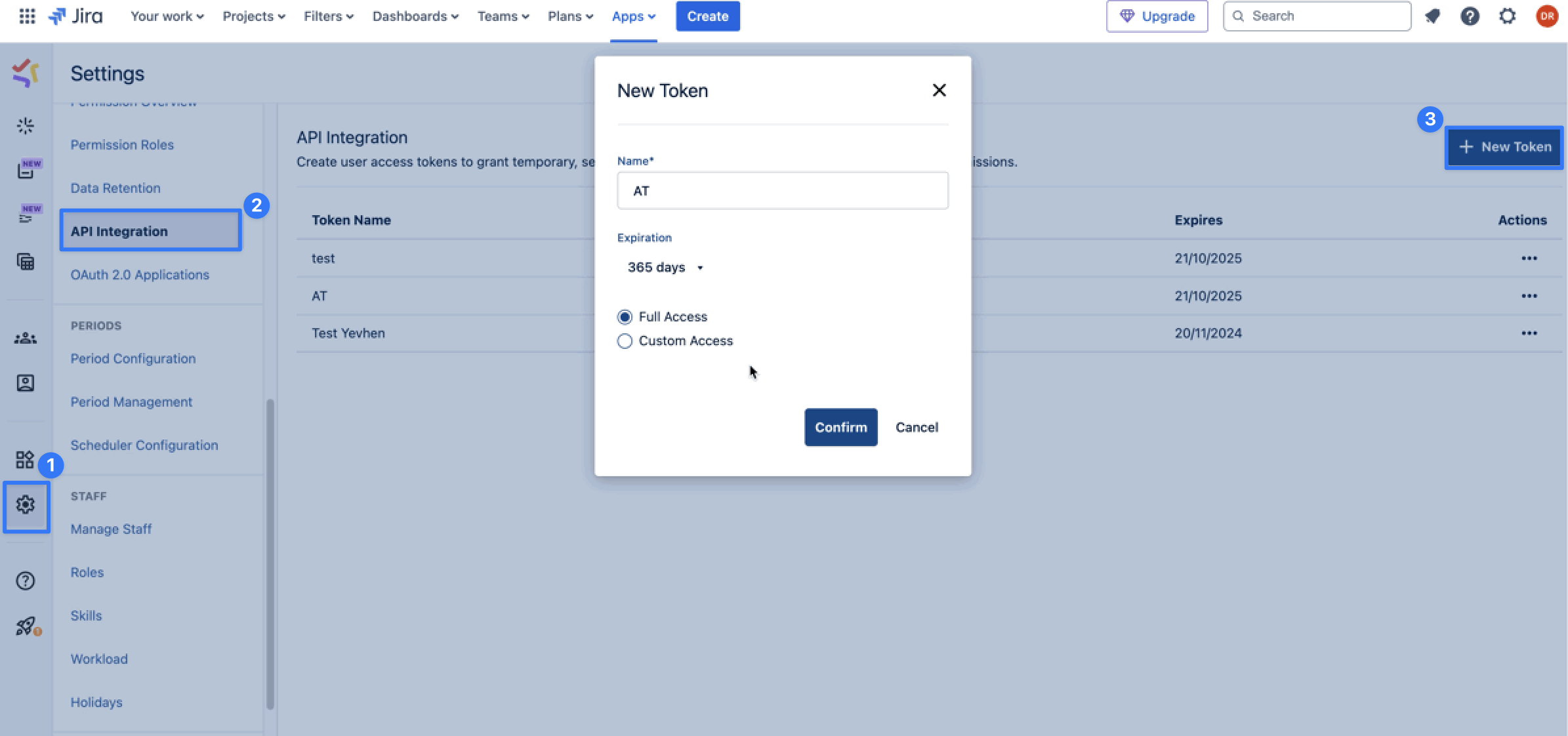 Click ‘New Token’ and make sure to choose maximum expiration period and full access:
