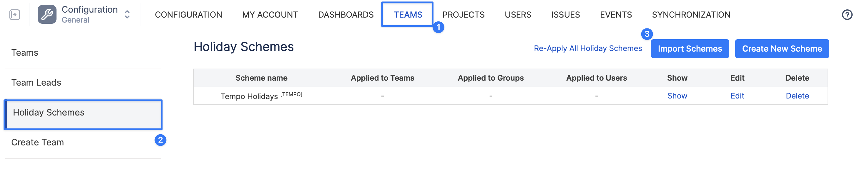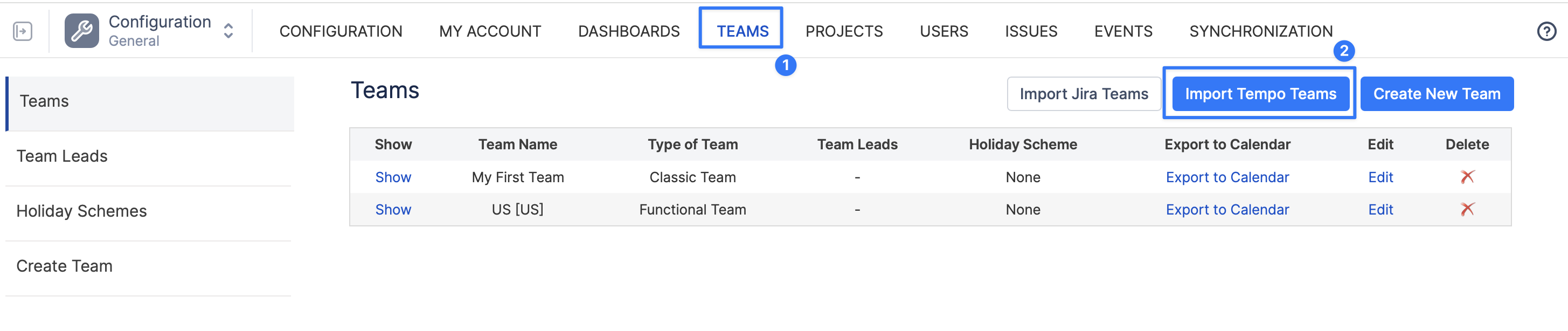Or directly via Configuration → Teams → Import Tempo Teams