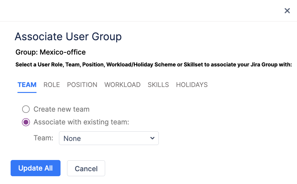 Team - A team can only be assigned to a single Jira group. When a team gets associated with a new Jira group, it automatically removes the association with the other group.