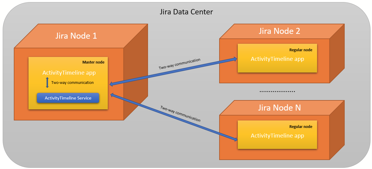 This process automatically starts on a single node that is called a “Master node”. If the service is terminated on a Master node or the whole Jira Node goes down then another random alive node is automatically promoted to the Master node status. The ActivityTimeline Service will be automatically launched there.