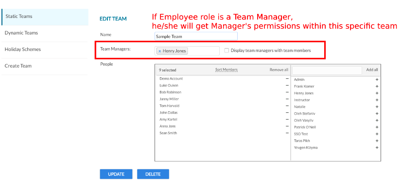 2. Team Manager position, allows employees to have manager permissions within a single team.