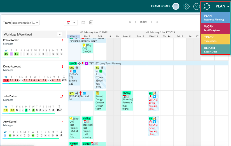 Admins, Managers - can see plans and work logs of any team and can manage teams and team members