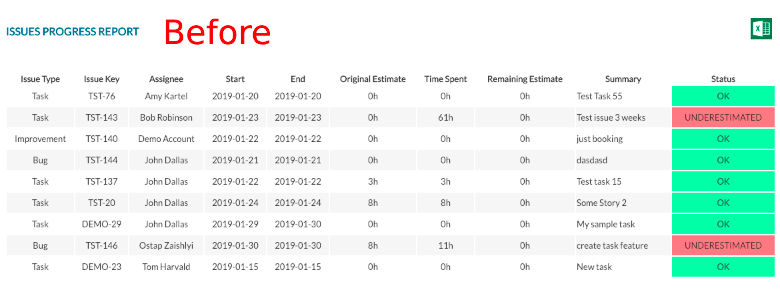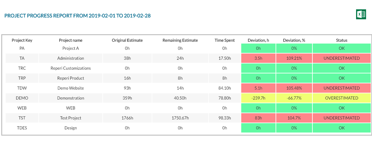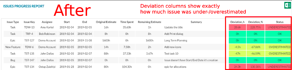 Classic ActivityTimeline reports with increased number of reports as well as some additional features (i.e. Deviation columns, ability to add custom fields into detailed worklog report)
