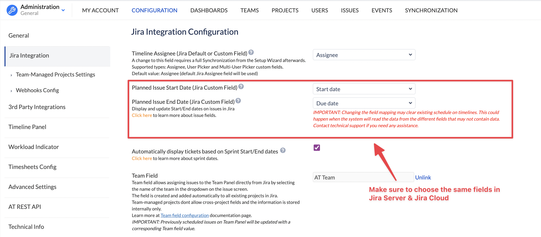 If you already have issues scheduled on the calendar and would like them to appear automatically, you need to make sure that Start/End date fields from your Jira are mapped to ActivityTimeline: