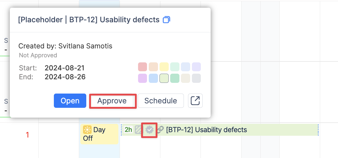 They can be used to explore different planning scenarios without actually modifying Jira issues. When a Placeholder event is approved, it creates an actual Jira task.