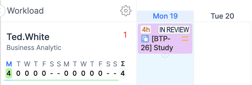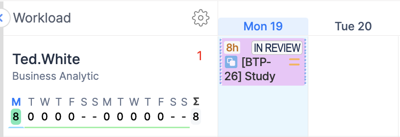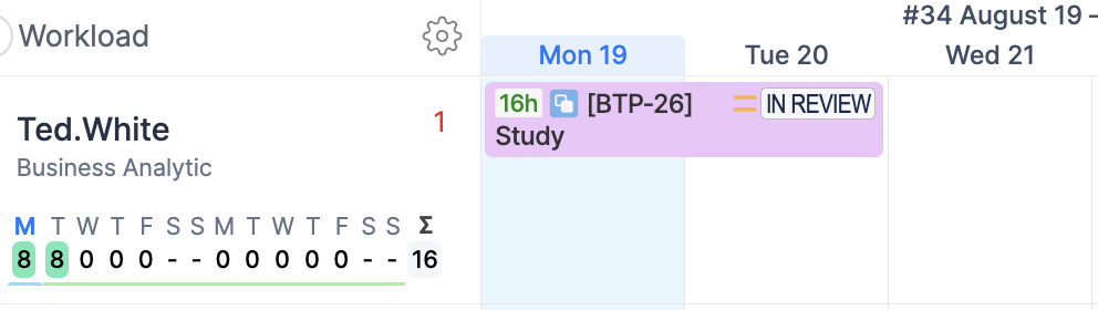 For example, the screenshot below demonstrates the task which is assigned to Ted White, Business Analytics. After the task was scheduled on his timeline, the system automatically set the start and end dates of that ticket in JIRA.