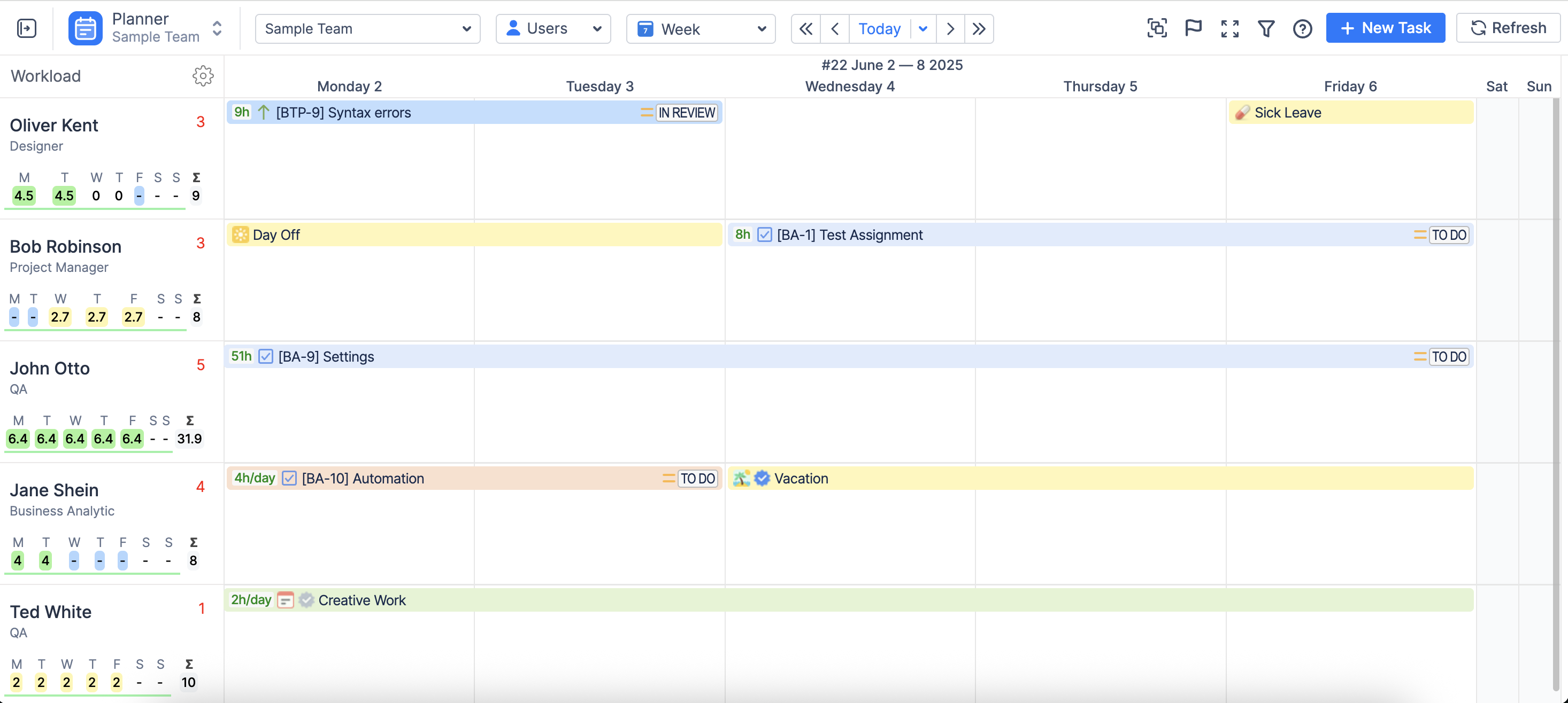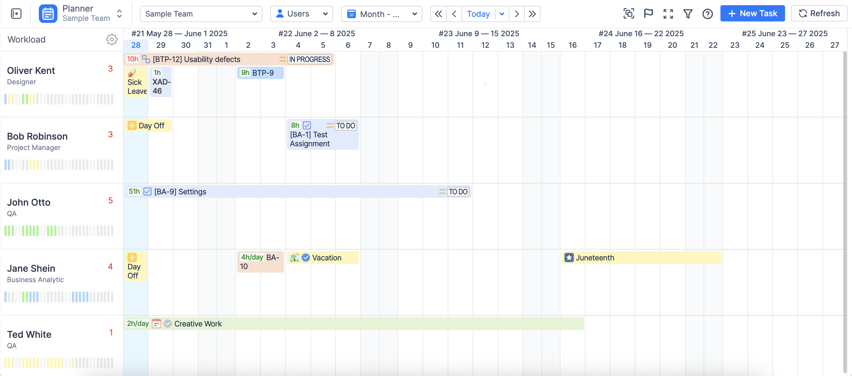 There are different interpretations of what workload is, but at its core, it refers to the total amount of work designated to a resource within a specific timeframe. Understanding and managing this effectively is crucial for maintaining a balanced team dynamic. The easiest way to check the workload is to see the workload indicator that is available under each resource: