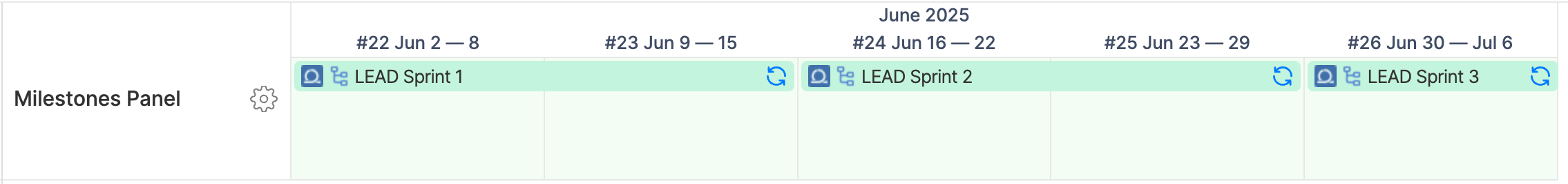 The milestone panel also gives the possibility to visualize sprints of the selected SCRUM boards. Click on the ⚙️ icon to choose the boards to display.