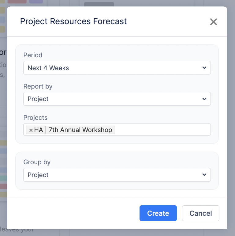 Project Resources Forecast provides a breakdown of team members’ scheduled work by project over a specific period from a project perspective. Similar to the Resource Utilization Forecast, it is generated based on all tasks and events scheduled on users’ timelines.