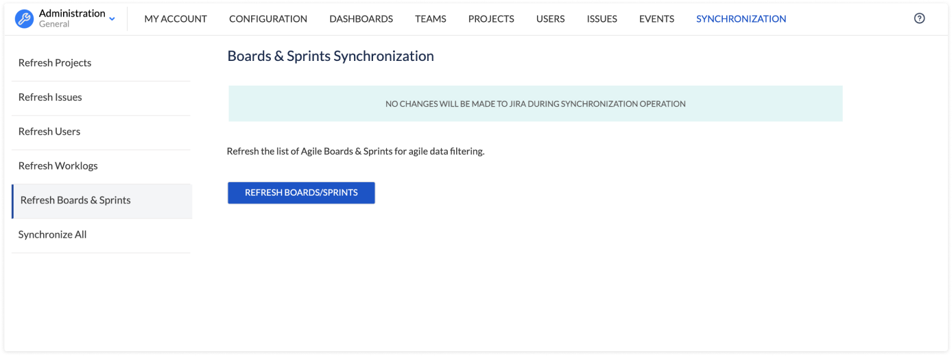 Go to Configuration → Synchronization → Refresh Boards & Sprints