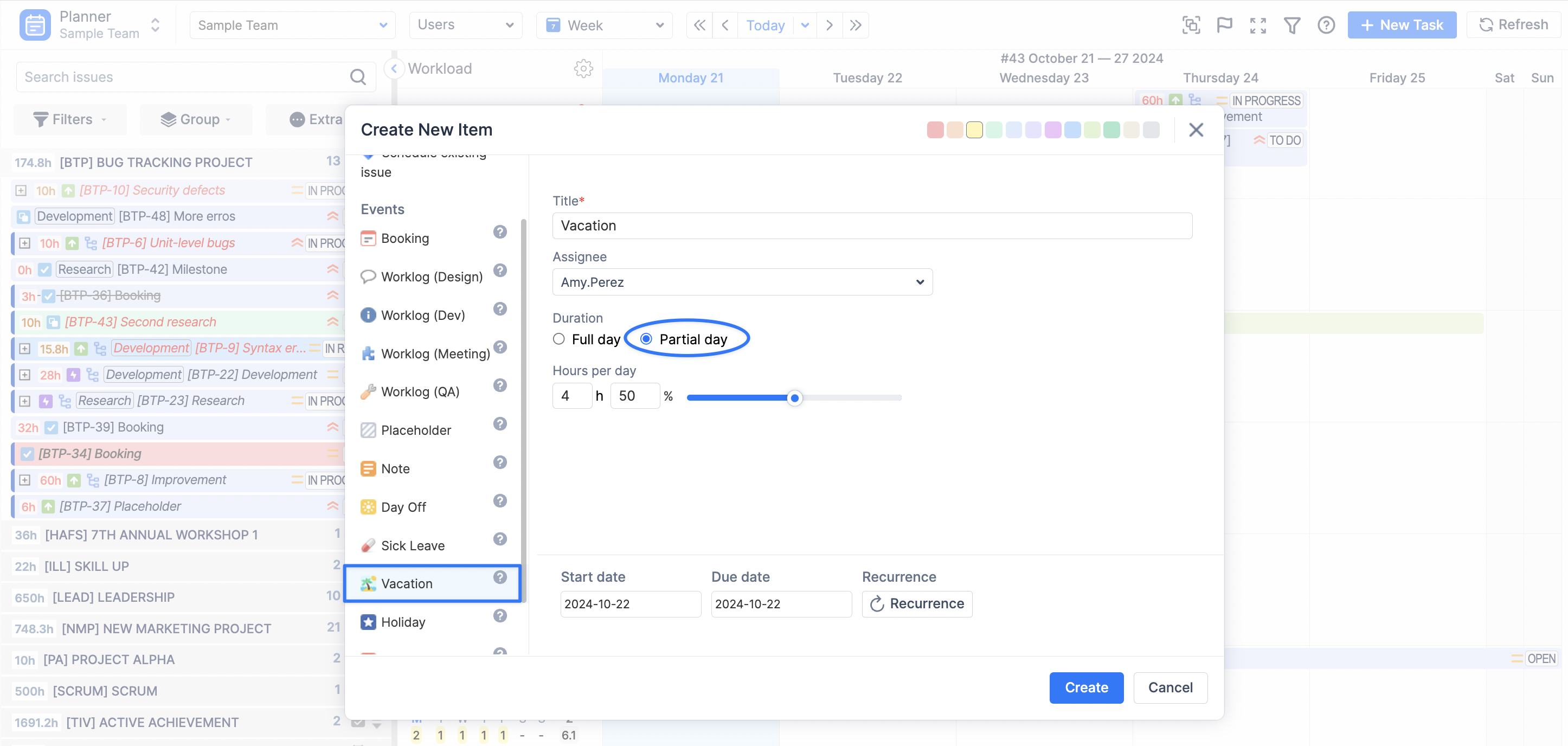 Added support for logging partial vacation days, providing more flexibility in time-off management.