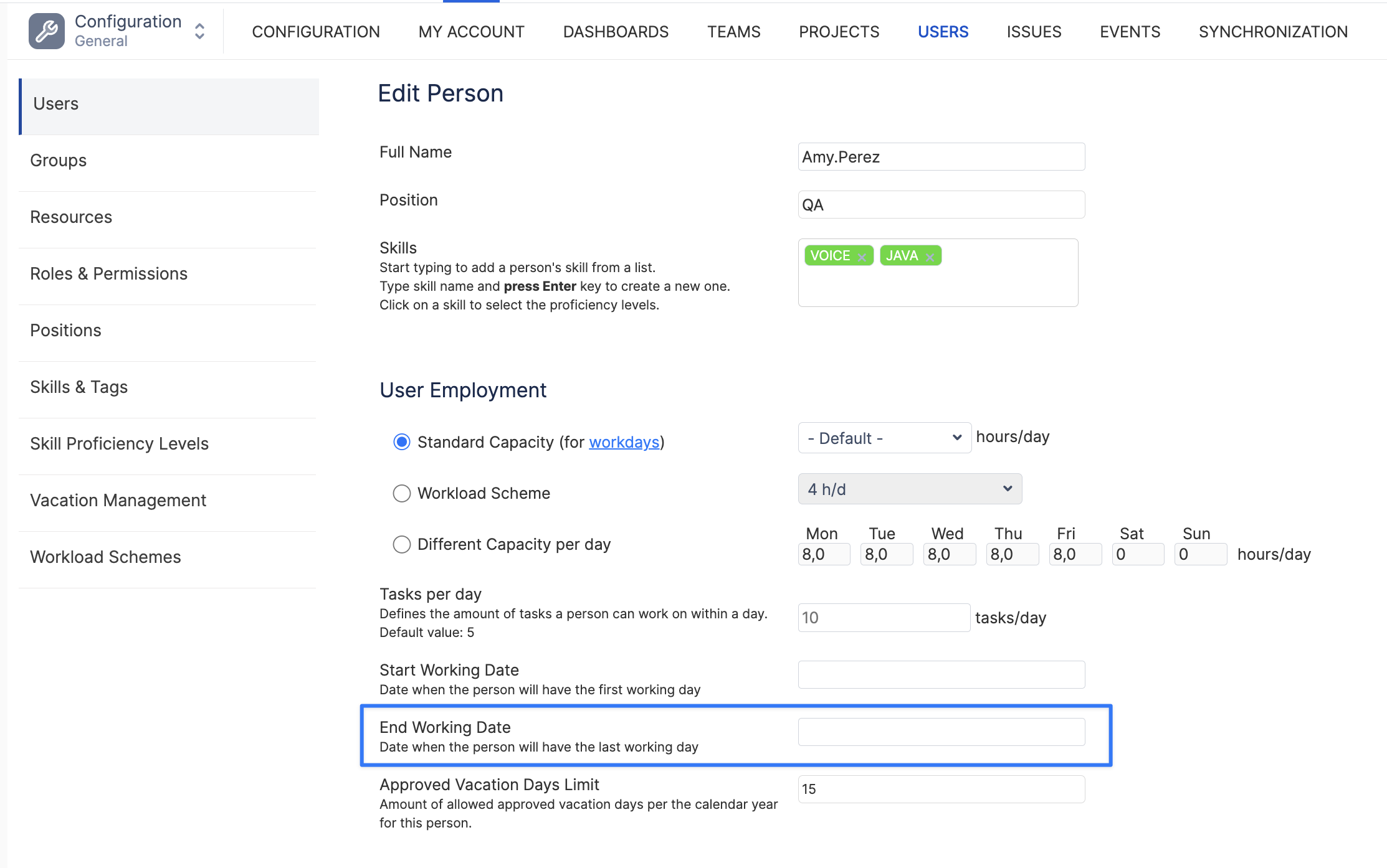 Implemented a new “End Working Date” field in user profiles for better employment timeline tracking: