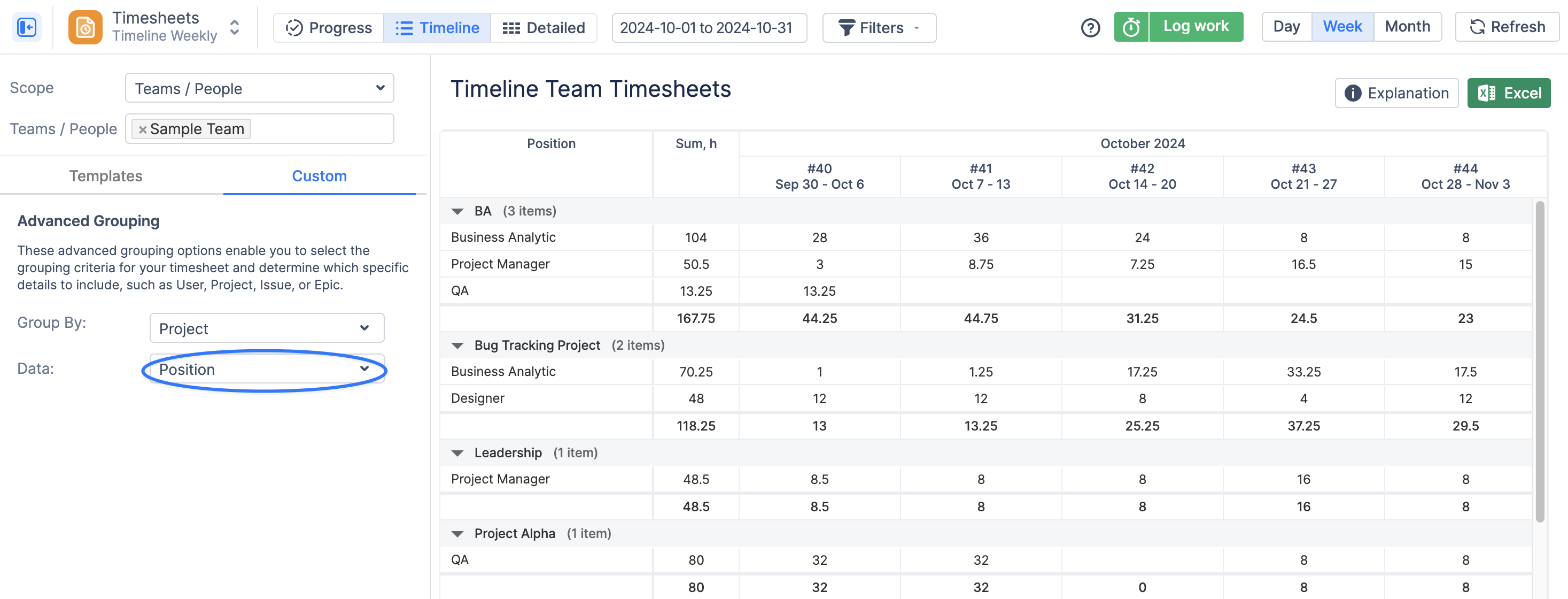 Extended the functionality of Positions in ActivityTimeline: Now, users can group Timesheets by Position, allowing for more structured reporting and better visibility into how time is spent across different roles within the organization.