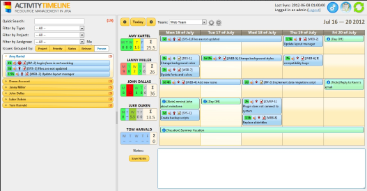 Workload Indicator displays how many hours is used per each work day per each person based on remaining estimate of scheduled JIRA issues.