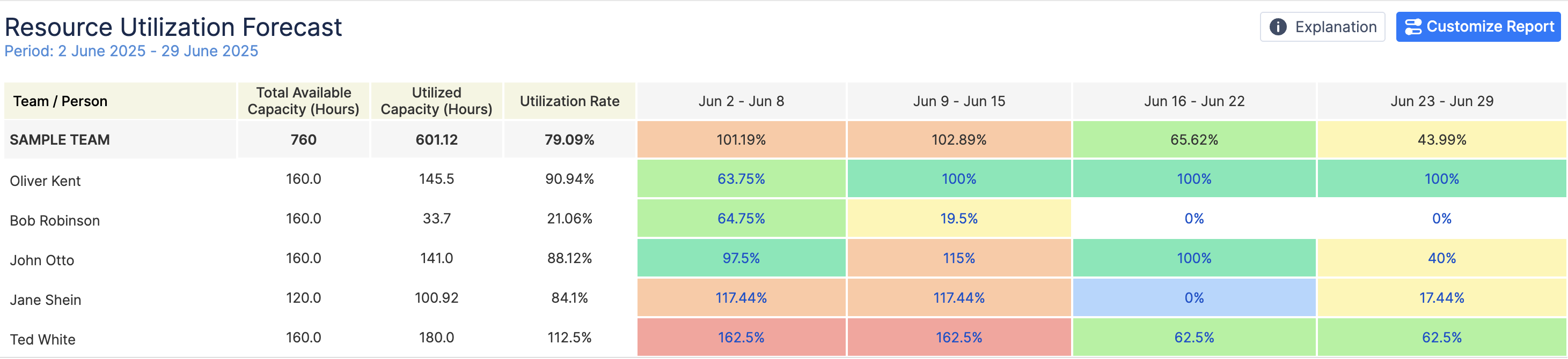 Forecasting - a set of reports generated based on the remaining time estimate. The system will use the remaining time estimate of JIRA tickets to gather information about assignees and their capacity, and build the workload reports based on it.