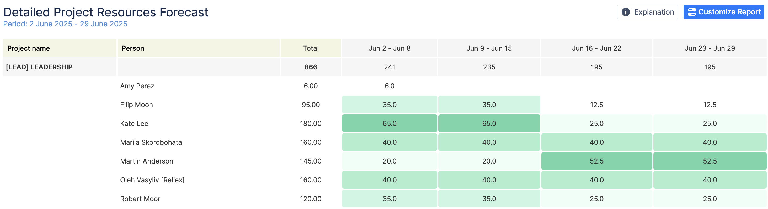 Enjoy the advanced cross-project reporting. Observe how resources are scheduled per project.