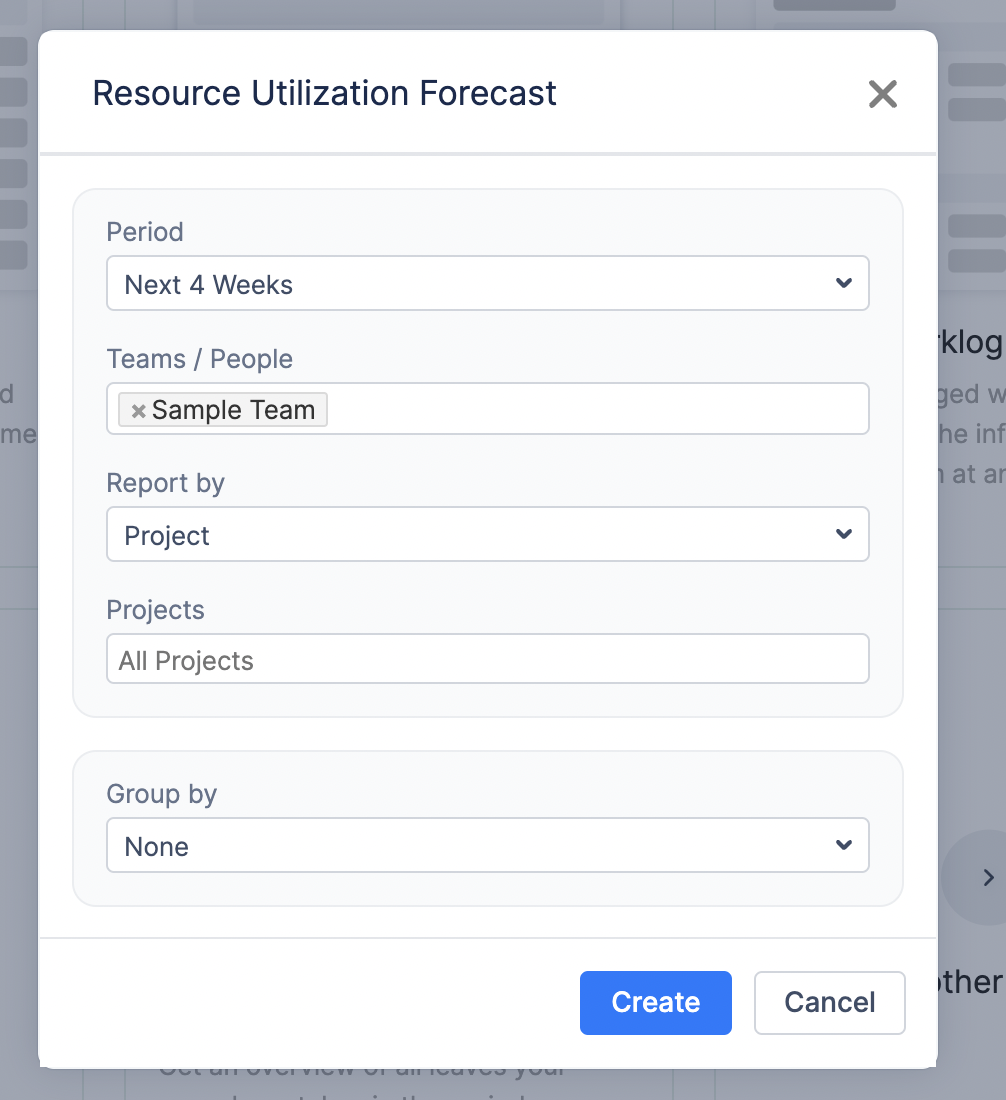 Resource Utilization Forecast provides an overview of a team’s expected workload for the future.