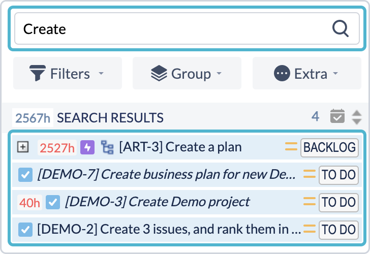 Apart from filtering the issues by different parameters, ActivityTimeline add-on allows quick issues search by issue number.