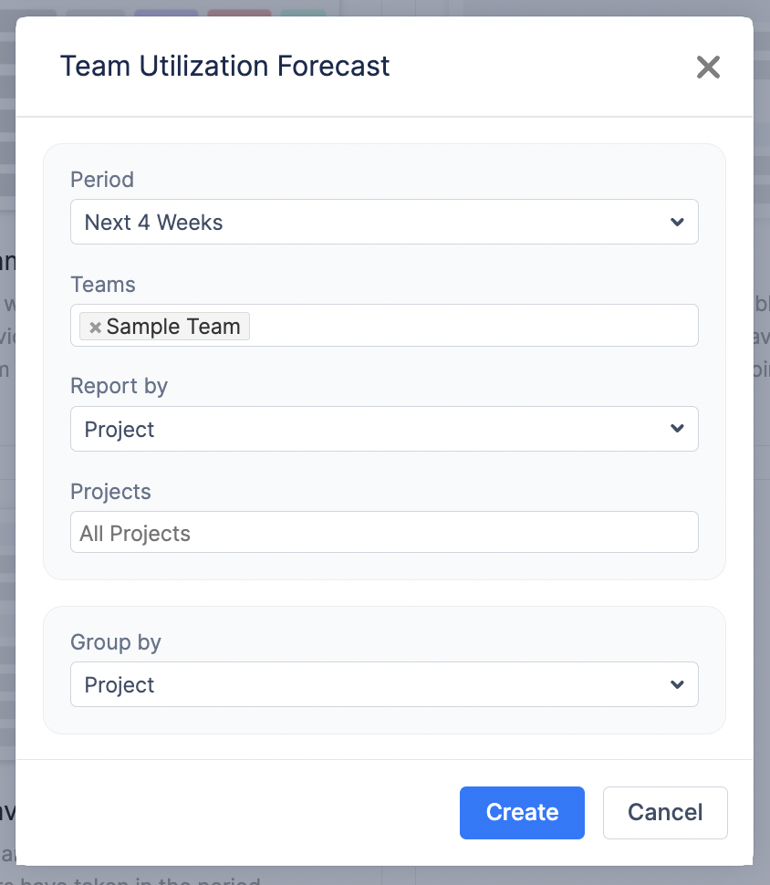 Period: Choose the time frame for the report from a predefined list (e.g., Next 4 Weeks, Next Month, etc.).