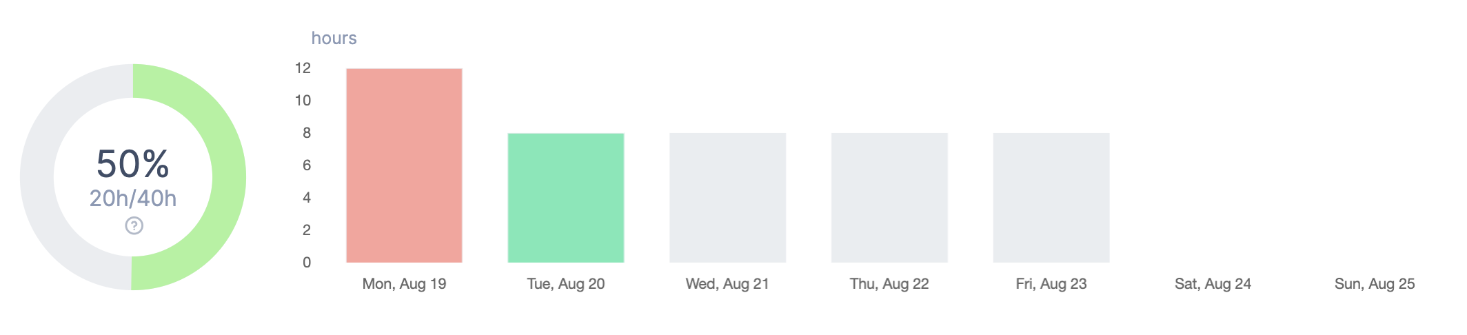Charts are a powerful tool for users to monitor and manage their timesheet progress over time. These visual representations provide a quick overview of logged hours, helping users stay on top of their work and ensuring that they meet their time-tracking goals.