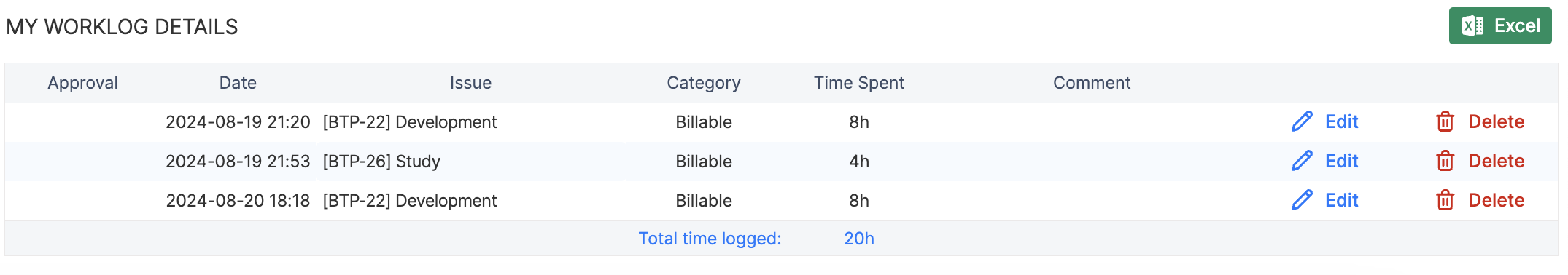 If adjustments are required, users can seamlessly modify their worklogs within the ‘My Worklog Details’ section of the Workspace view. This section offers a detailed breakdown of individual worklogs, allowing for precise edits and ensuring that all time entries are accurate and up-to-date.