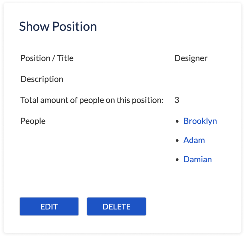 Positions can be assigned to users in the same way as skills, simply by typing the name of the new or existing position near the user name: