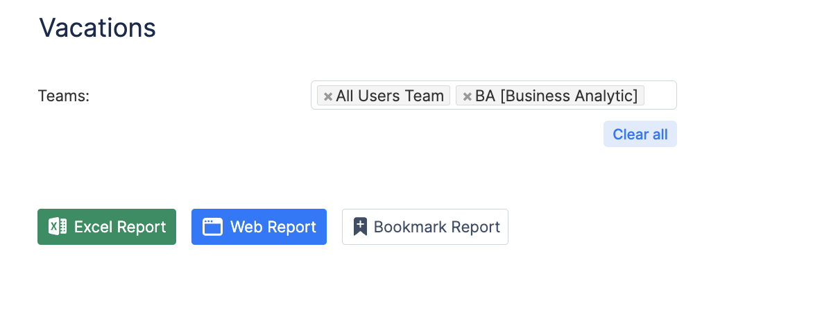The report represents the number of allowed vacations per user during the annual period. It shows the requested vacation days, and how many of them are already approved.