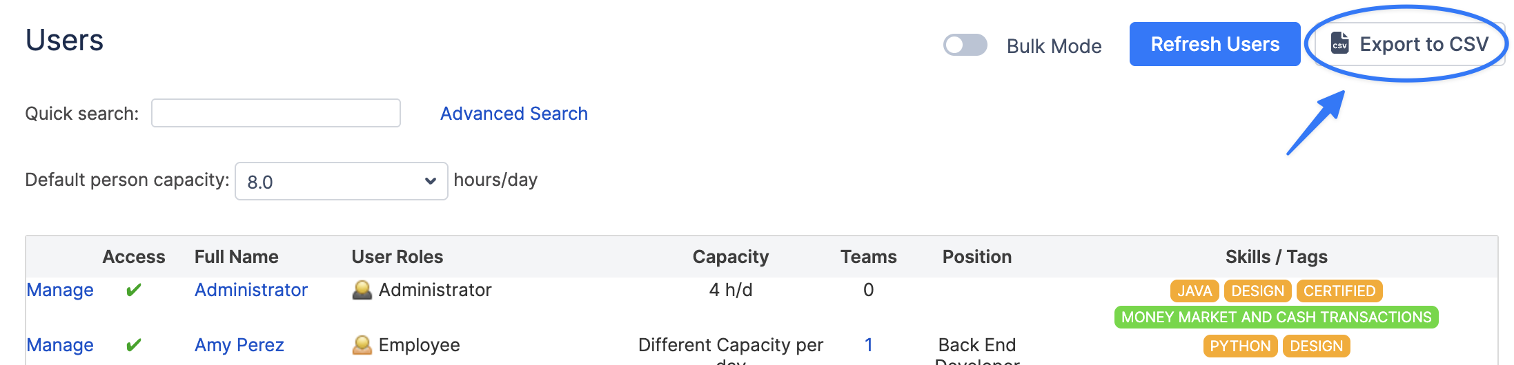 Added a new Export to CSV option on the Users page in the Configuration section of ActivityTimeline — designed to help administrators and managers easily extract and analyze user data outside the app.