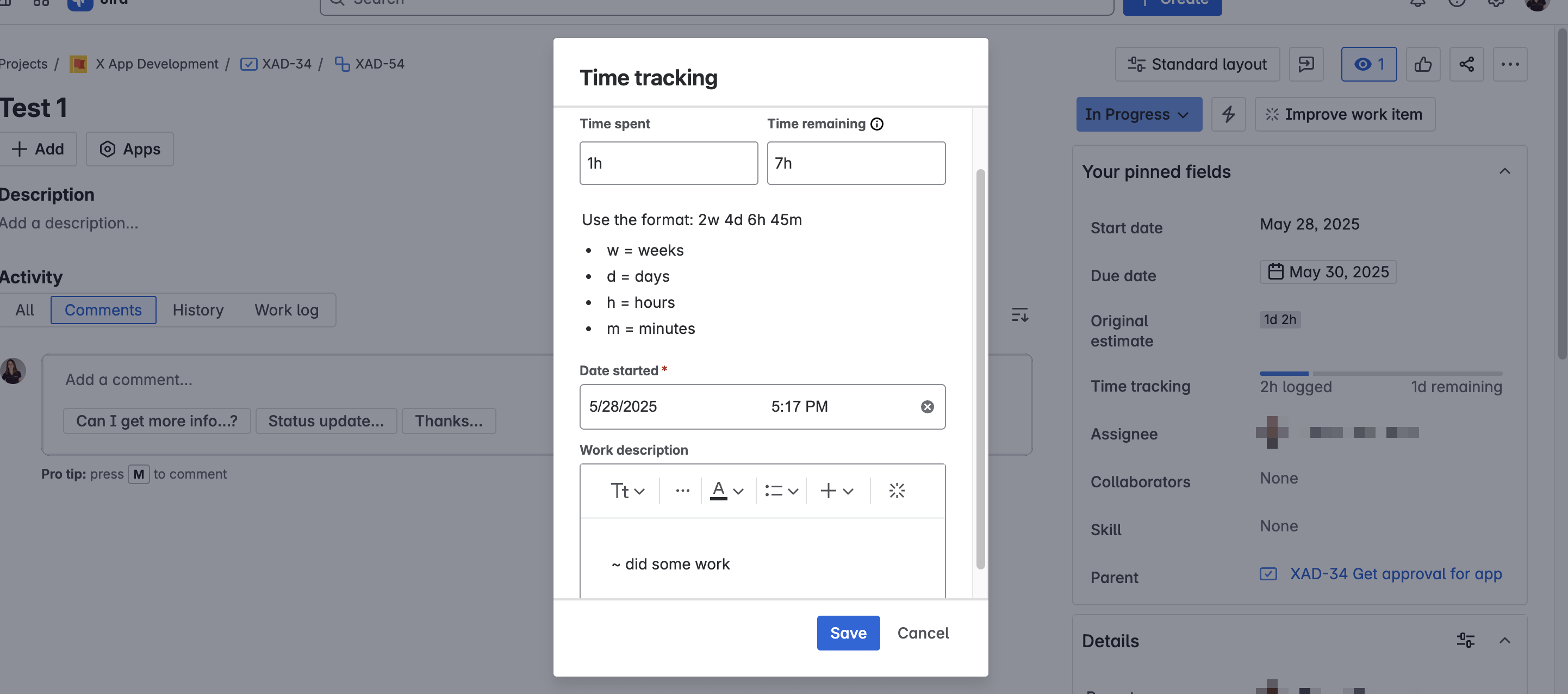 ActivityTimeline Work Log dialog in Jira significantly improves the user experience in time tracking. It introduces two major features that simplify and streamline the process of logging time for tasks: